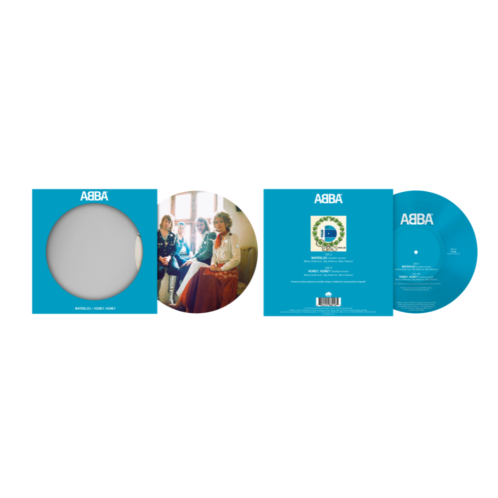 Waterloo (sueco) 7″ picture disc incorpora imágenes clásicas de la banda de la época original y cuenta con una canción en la cara B