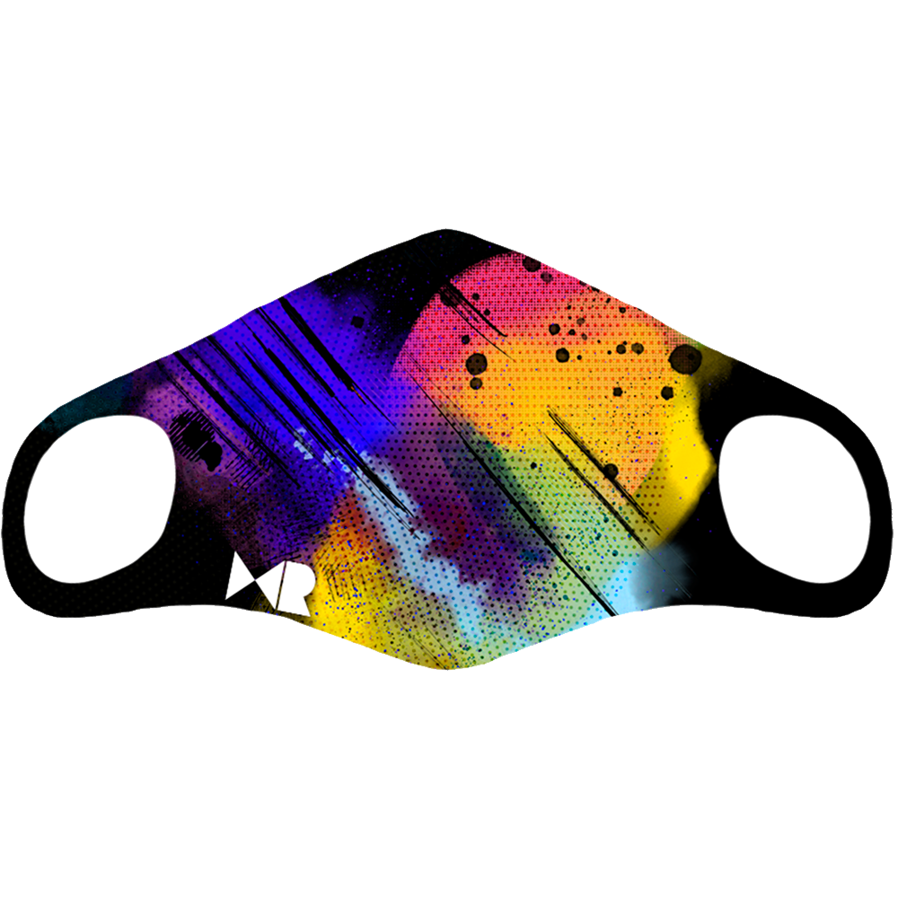 Mascarilla sanitaria certificada (UNE 0065) con diseño MR explosión de color.