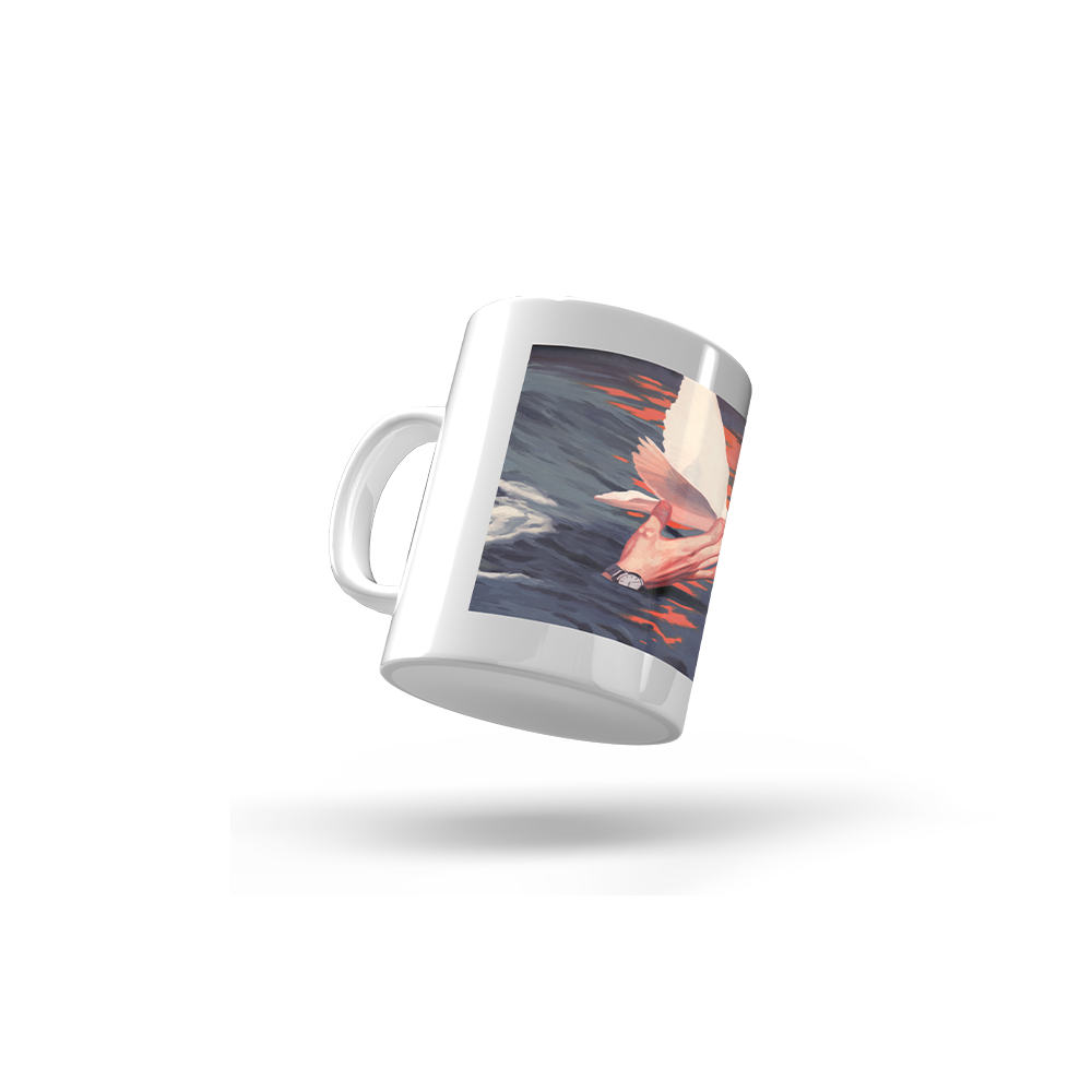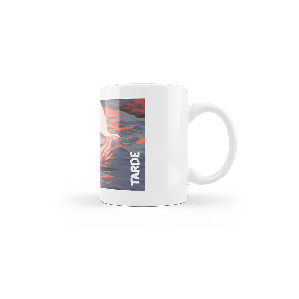 Taza blanca serigrafiada con la portada del single Tarde.