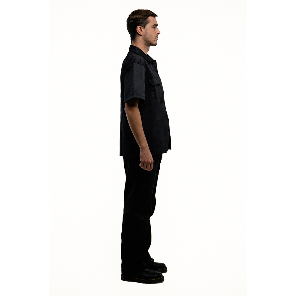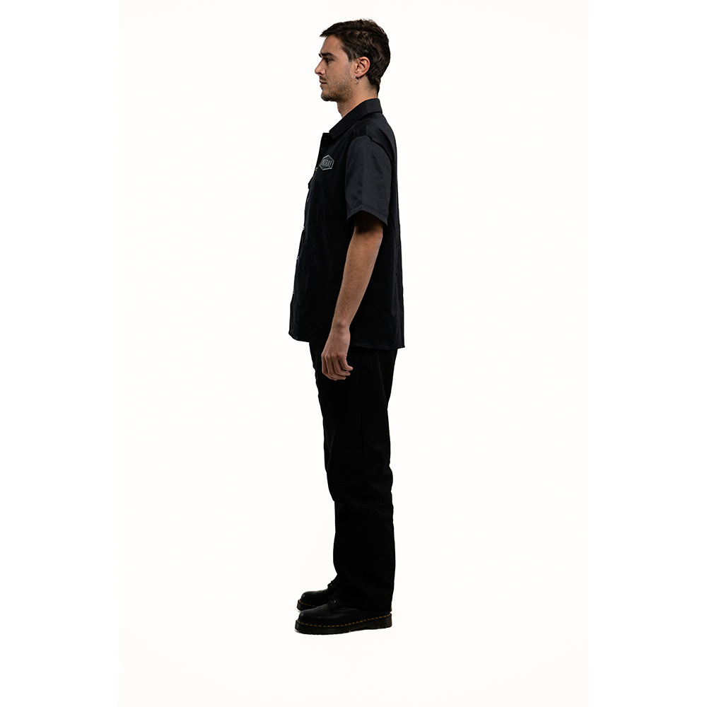 Camisa manga corta de 65% poliéster, 35% algodón y 180gsm con alta resistencia para máxima durabilidad.  Tiene un bolsillo funcional a un lado del pecho, y un parche del logo oficial de Morat bordado del otro lado. La worker tiene un corte oversized diseñado exclusivamente para esta colección.