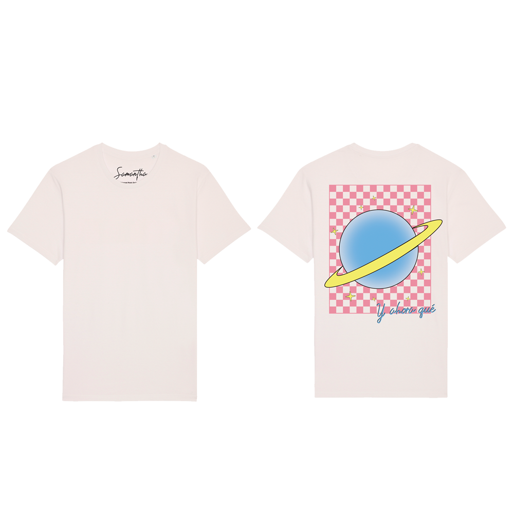 Camiseta de algodón orgánico certificado con diseño retro basado en una de las frases favoritas de Samantha, ¿Y ahora qué?.