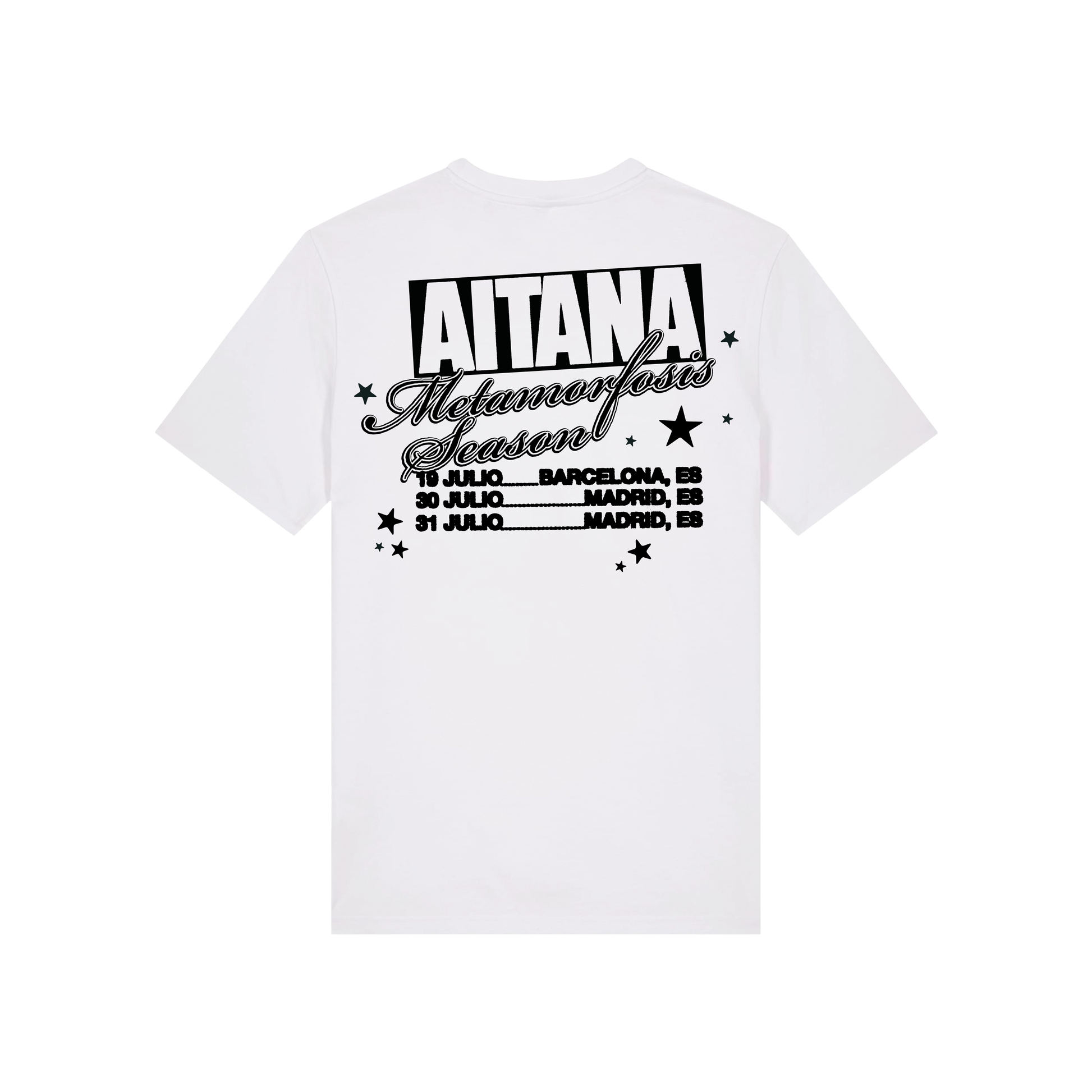 Diseño exclusivo con el logo de Aitana en la parte delantera y las fechas de los conciertos en parte trasera.