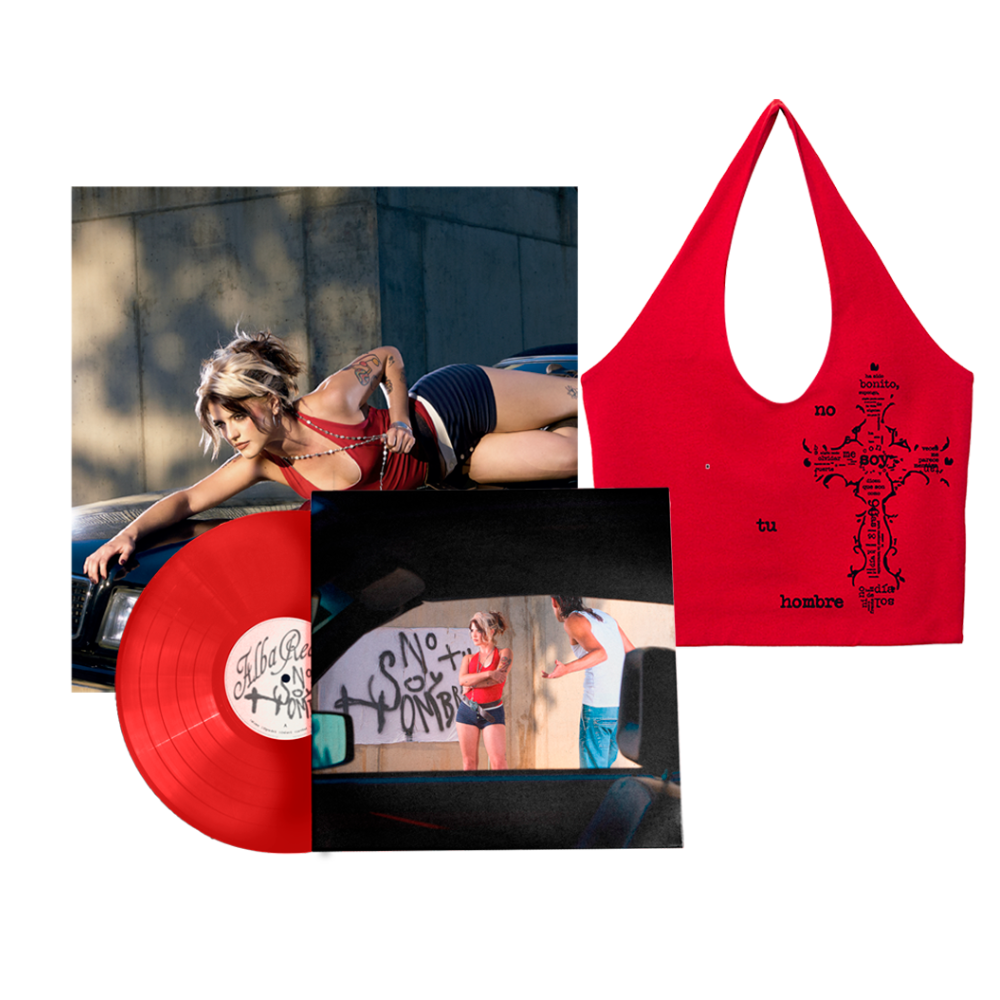 Edición exclusiva y limitada del pack Vinilo color rojo firmado junto al póster oficial de lanzamiento y el Top Halter NSTH, formato exclusivo de la tienda oficial de Alba Reche.