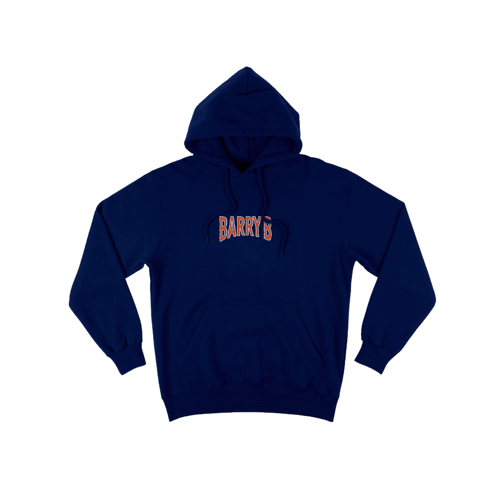 Sudadera azul, con nombre del artista Barry B delante y “No bark, all bites” estampado en la espalda junto al camión de la portada de la canción “Monster Truck”. 💥