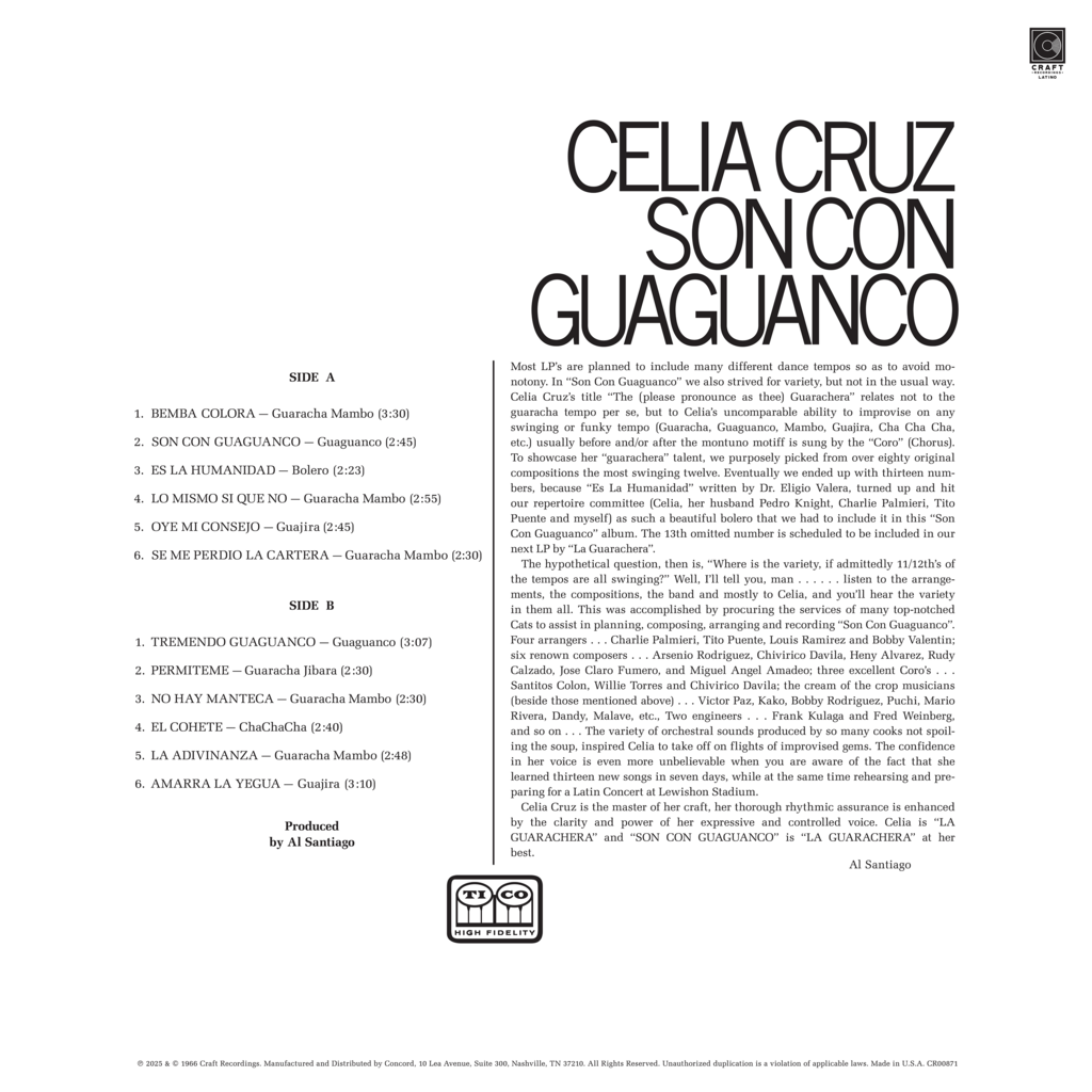 Edición remasterizada analógicamente de 'Son Con Guaguancó', debut en solitario de Celia Cruz, a través de Fania / Concord.