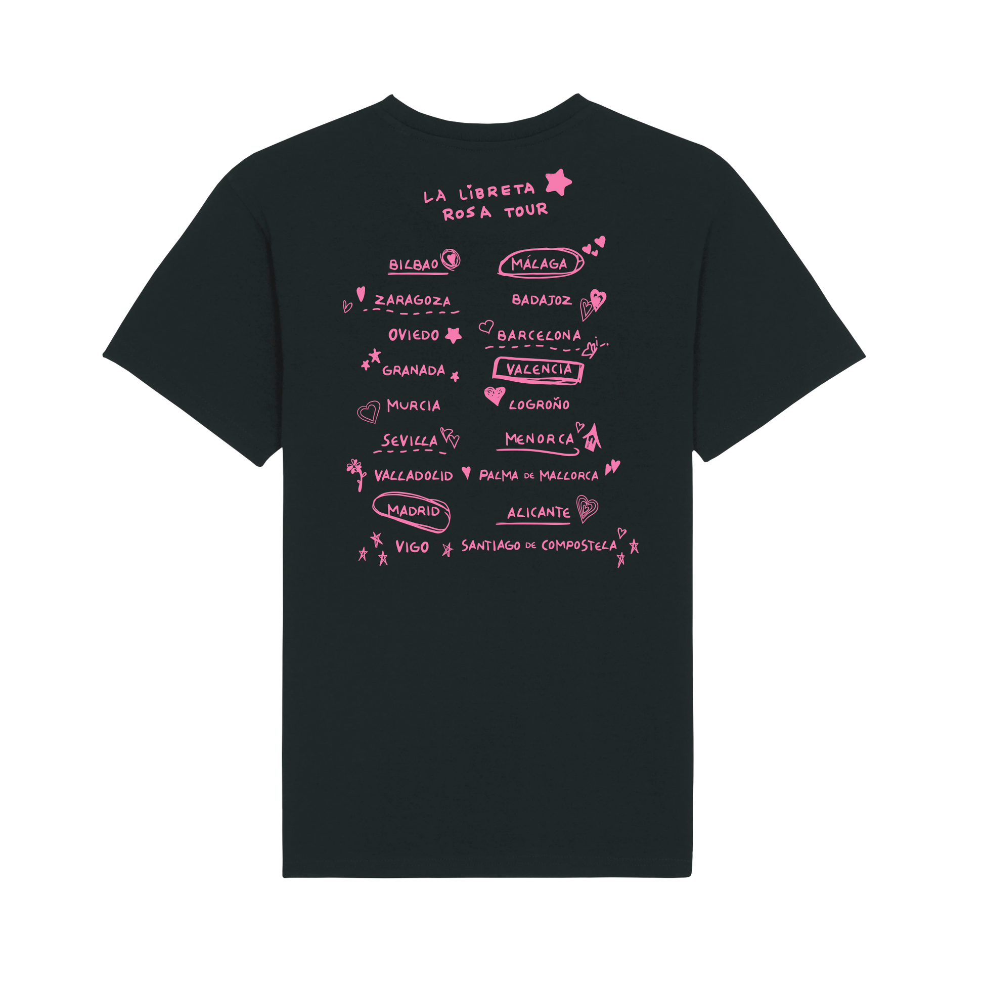 Consigue la camiseta oficial conmemorativa de "la libreta rosa tour" y ven al concierto con ella. Es un recuerdo único donde tendrás todas las ciudades que visitará Chiara en el tour.