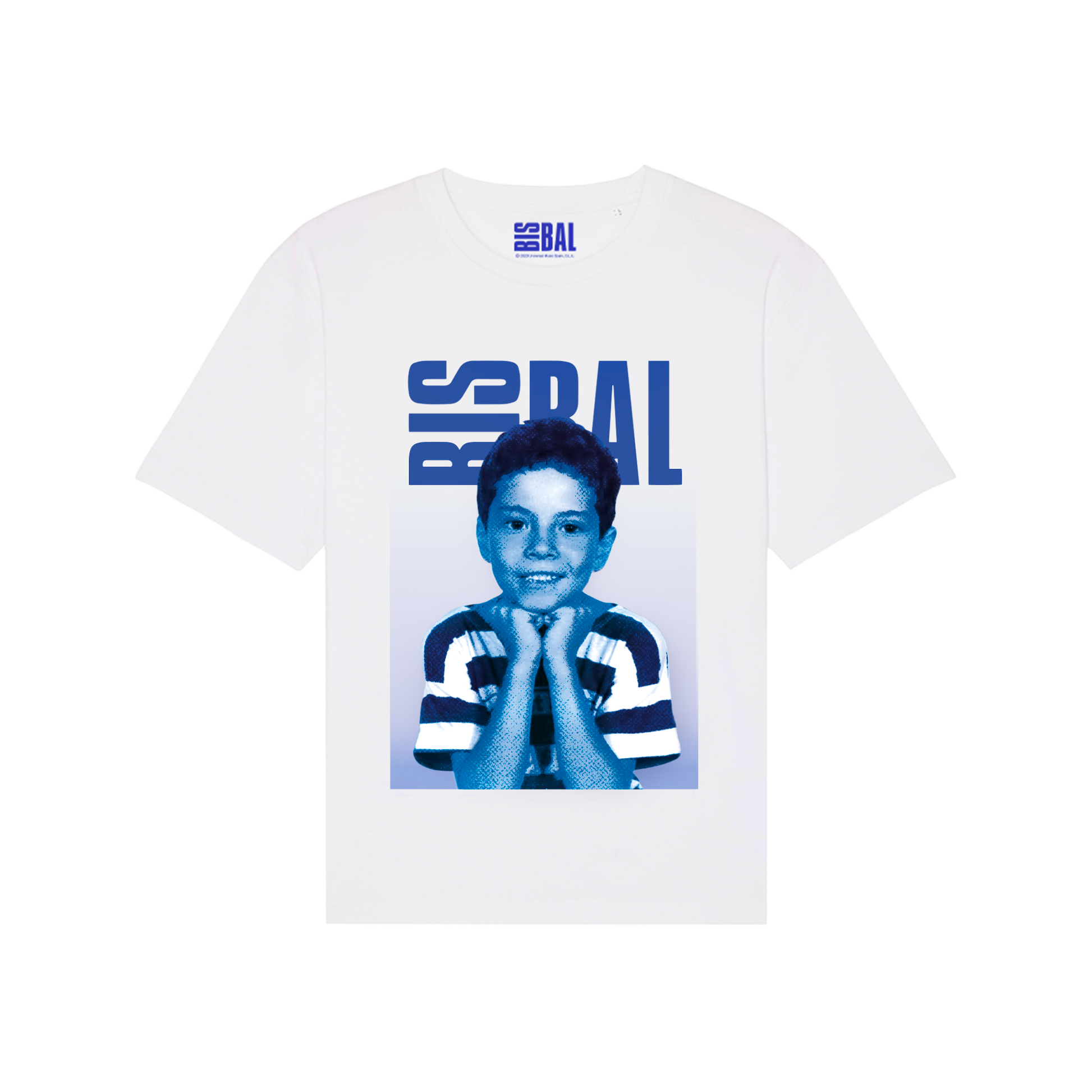 Camiseta fotográfica de David Bisbal de pequeño con efecto azulado.
