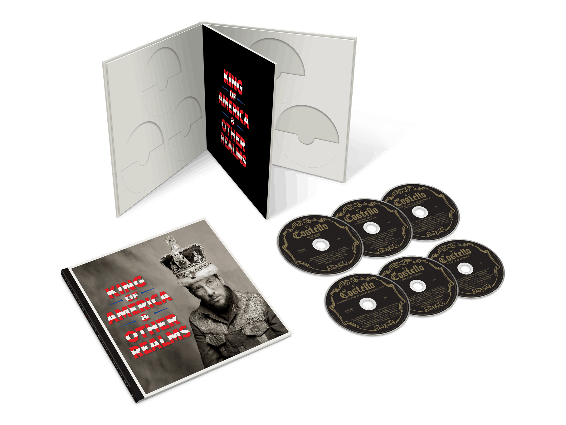 Formato deluxe 6 CD, Elvis Costello: King of America & Other Realms, rastrea sus viajes musicales desde Hollywood, donde se grabó el álbum King Of America en 1986, hasta una nueva versión de “Brilliant Mistake” grabada en Cape Fear a principios de 2024, a través de las aventuras discográficas de Costello en Nueva Orleans, Oxford y Clarksdale. Mississippi, Nashville, Memphis y Tennessee, guiados por el ensayo de 35 páginas del propio Costello que incluye numerosas fotografías nunca antes vistas.
