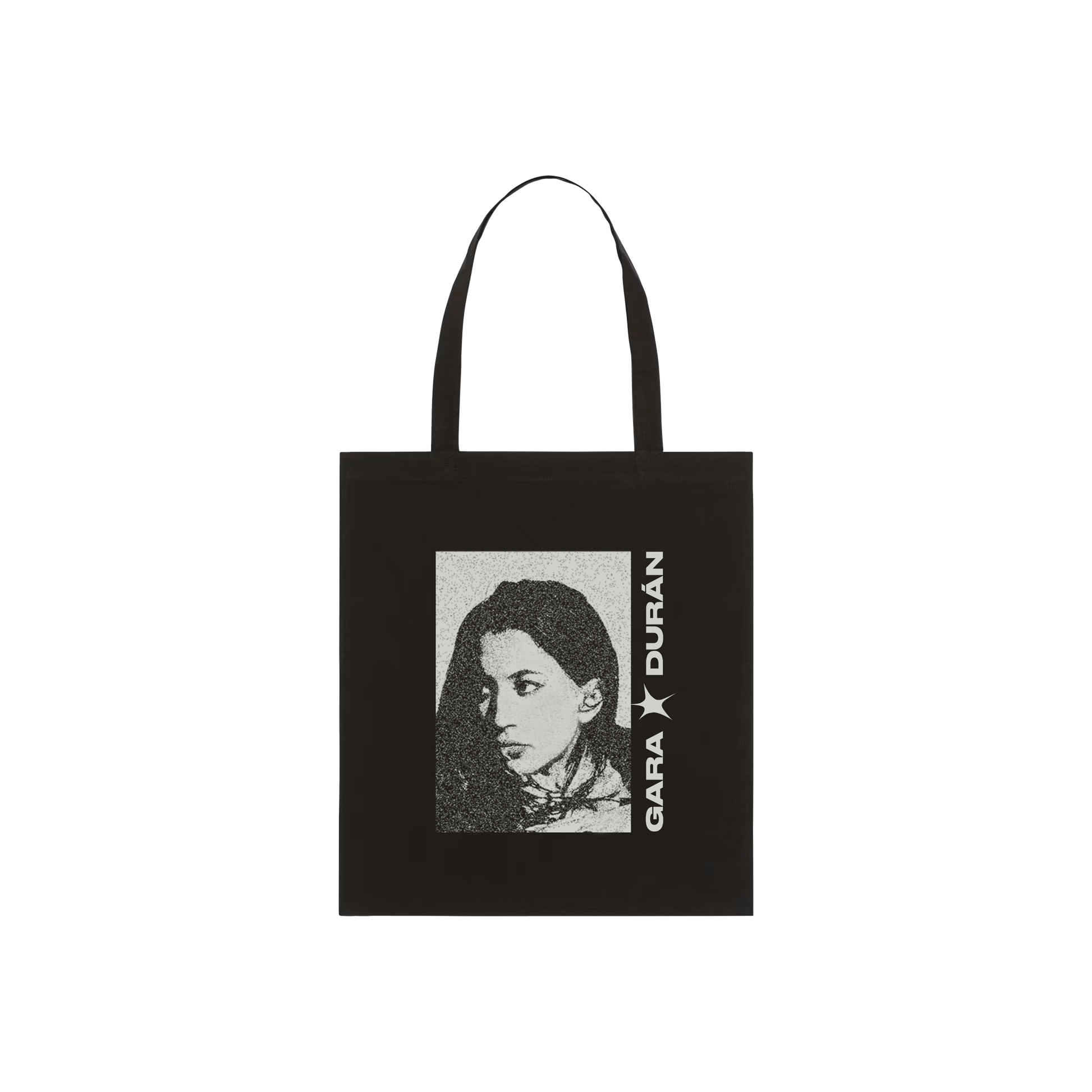 Tote bag negra con fotografía en blanco y negro de Gara Durán.