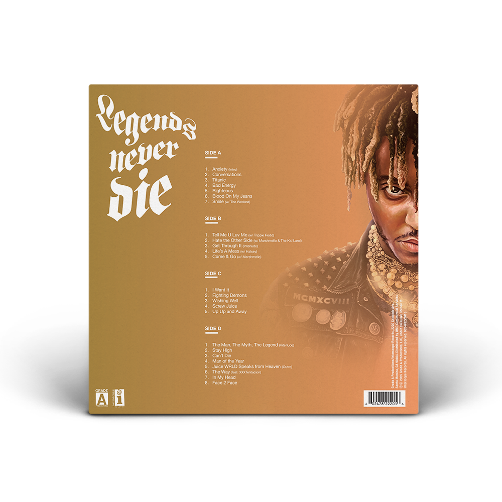 El primer álbum póstumo del rapero Juice WRLD, "Legends Never Die", ya está disponible en vinilo. Este proyecto de 22 canciones batió varios récords al debutar en el número 1 del Billboard 200 tras su lanzamiento. Incluye los exitosos sencillos "Righteous", "Come & Go (With Marshmello)" y "Wishing Well". Doble Vinilo.