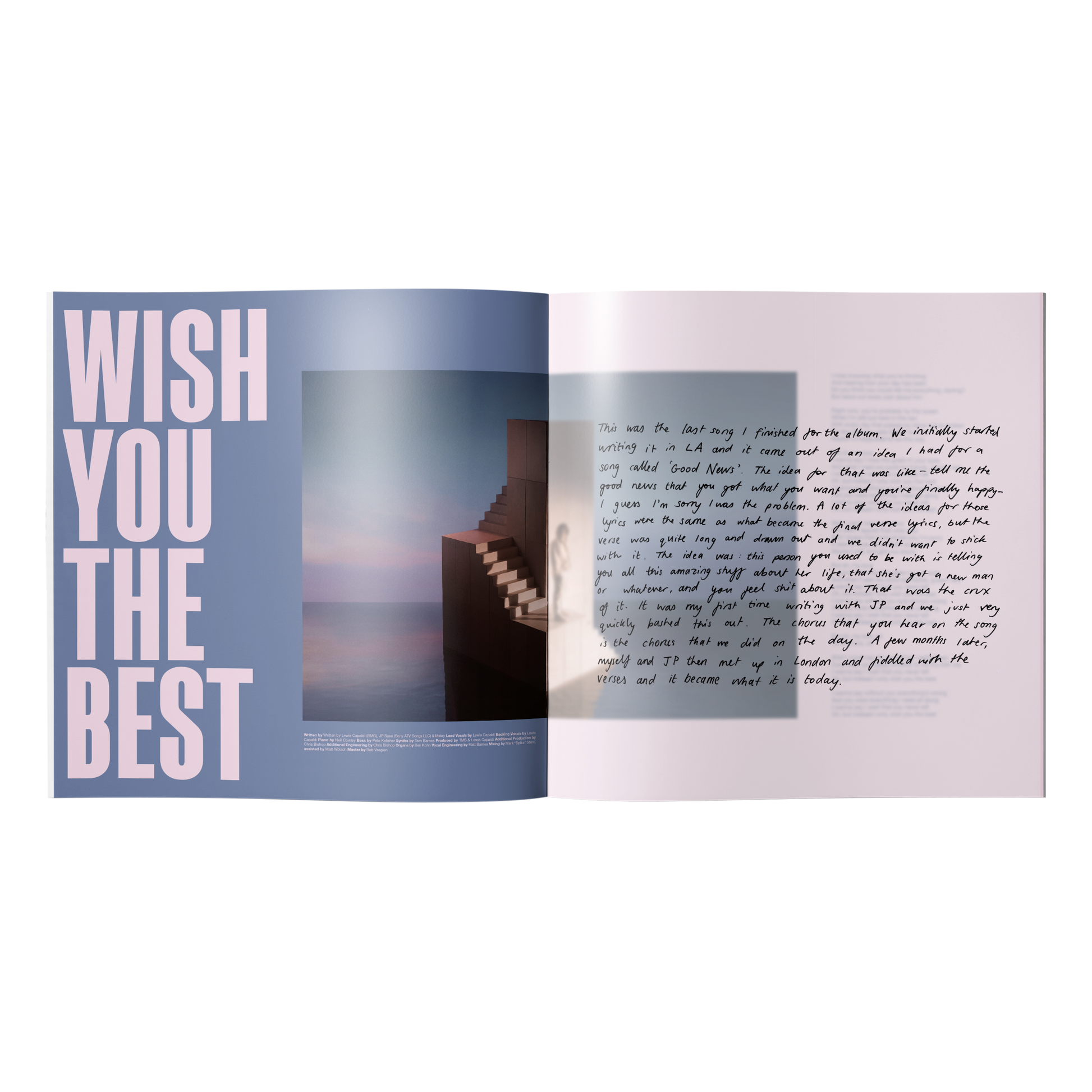 Vinilo blanco 12" de 180 gramos; funda interior gatefold con el disco y 5 imágenes impresión brillo; libreto de 64 páginas - papel arte barnizado mate con imágenes y letras + páginas translúcidas con anotaciones del propio Lewis; todo ello en un estuche de cartón mate; pegatina de marketing
