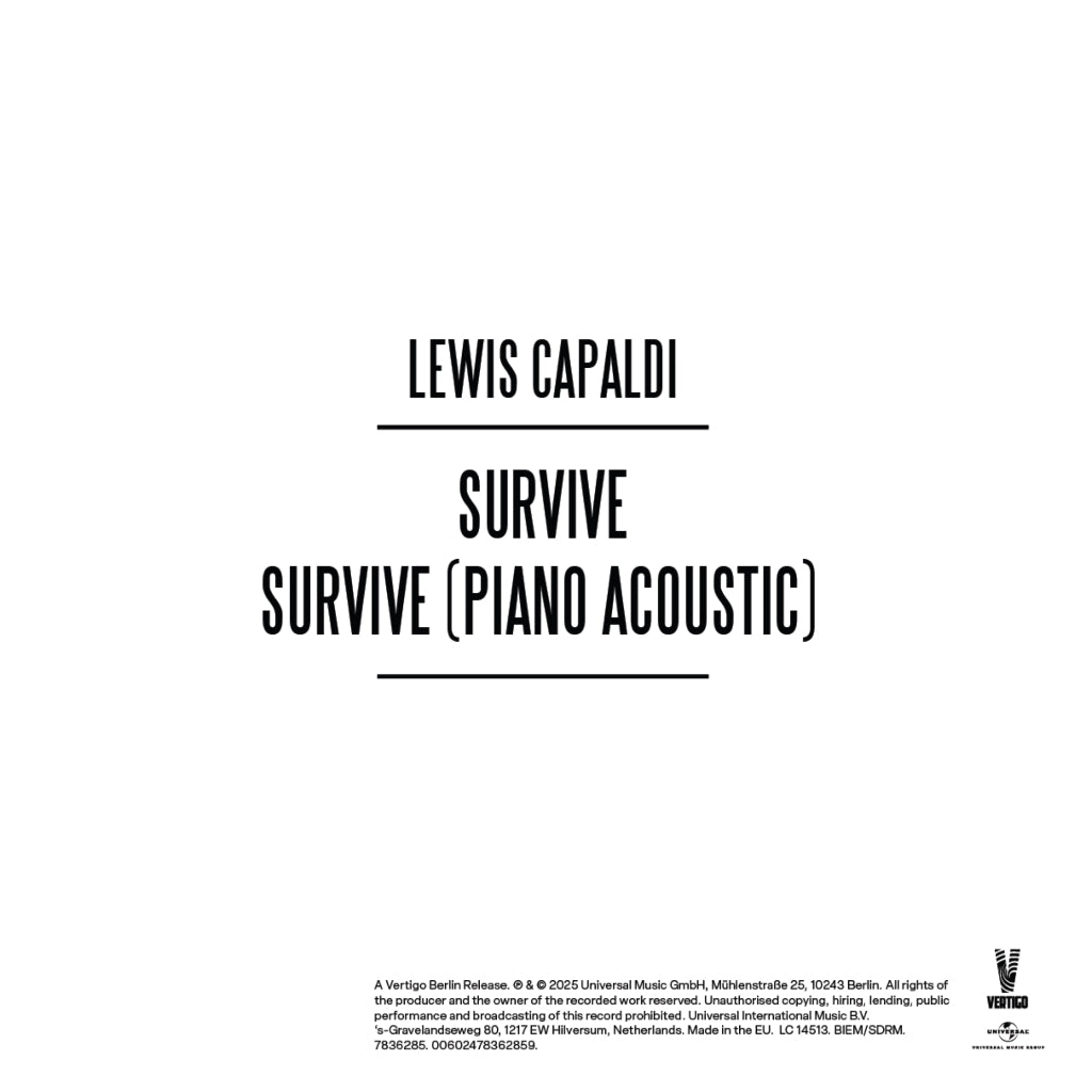 La superestrella mundial Lewis Capaldi regresa con su nuevo sencillo "Survive", una canción escalofriante y brutalmente honesta que aborda los retos de salud mental que suponen la inseguridad y la desesperación, pero que termina con un estribillo lleno de rebeldía. Al marcar una nueva era, Lewis no solo está sobreviviendo, sino que regresa aún más fuerte, con el corazón abierto y listo para dar un nuevo paso adelante.