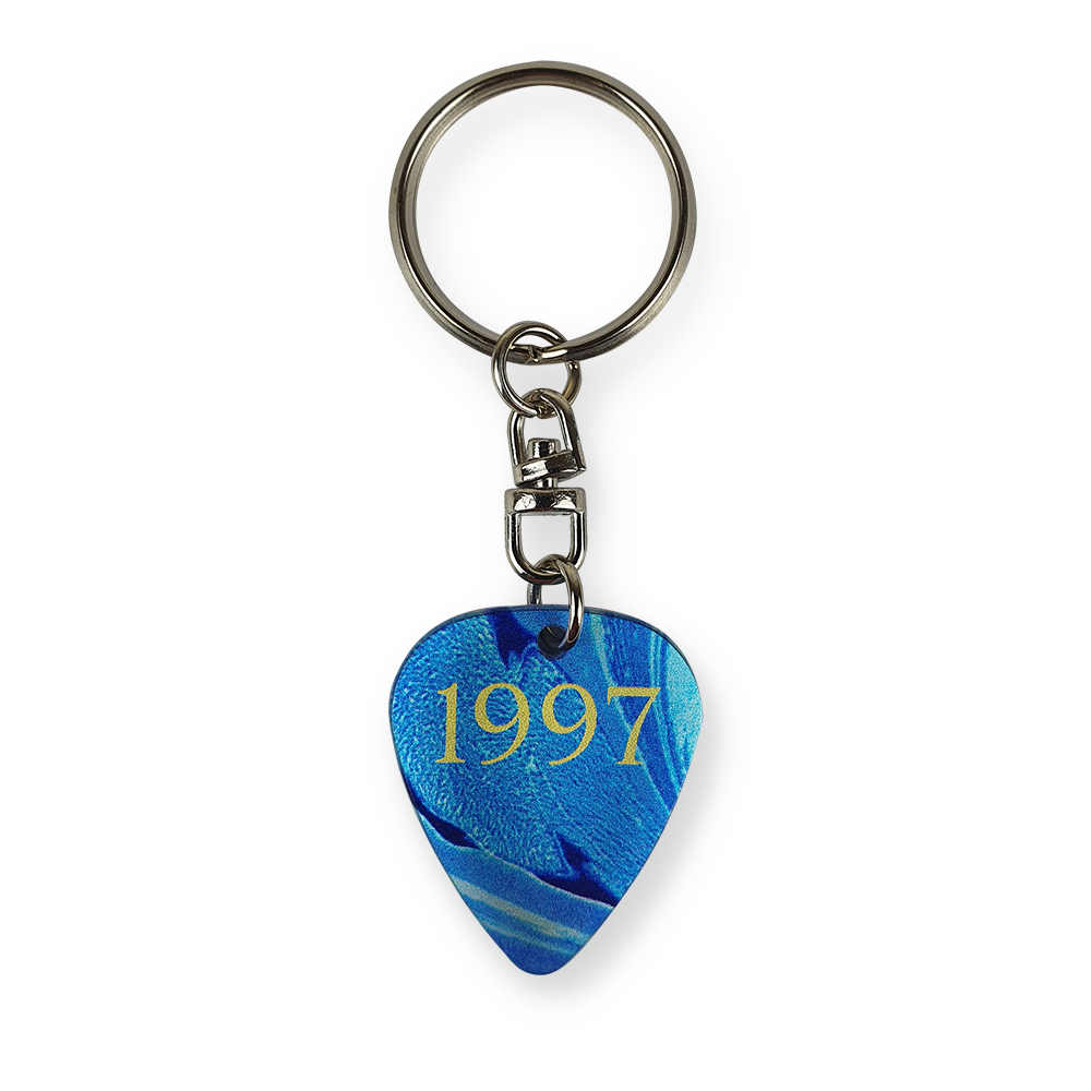 Llavero con púa estampada con el diseño de la portada de 1997.