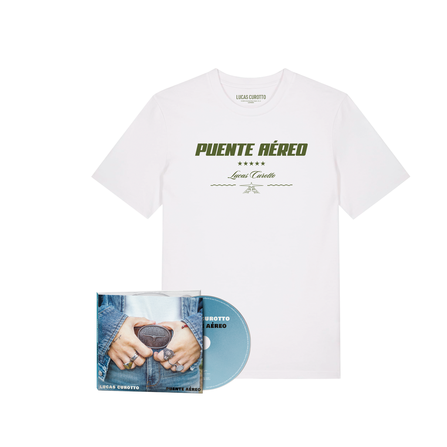Pack compuesto por el CD "Puente Aéreo" (Edición Exclusiva Firmada) y Camiseta Oficial "Puente Aéreo" Blanca.