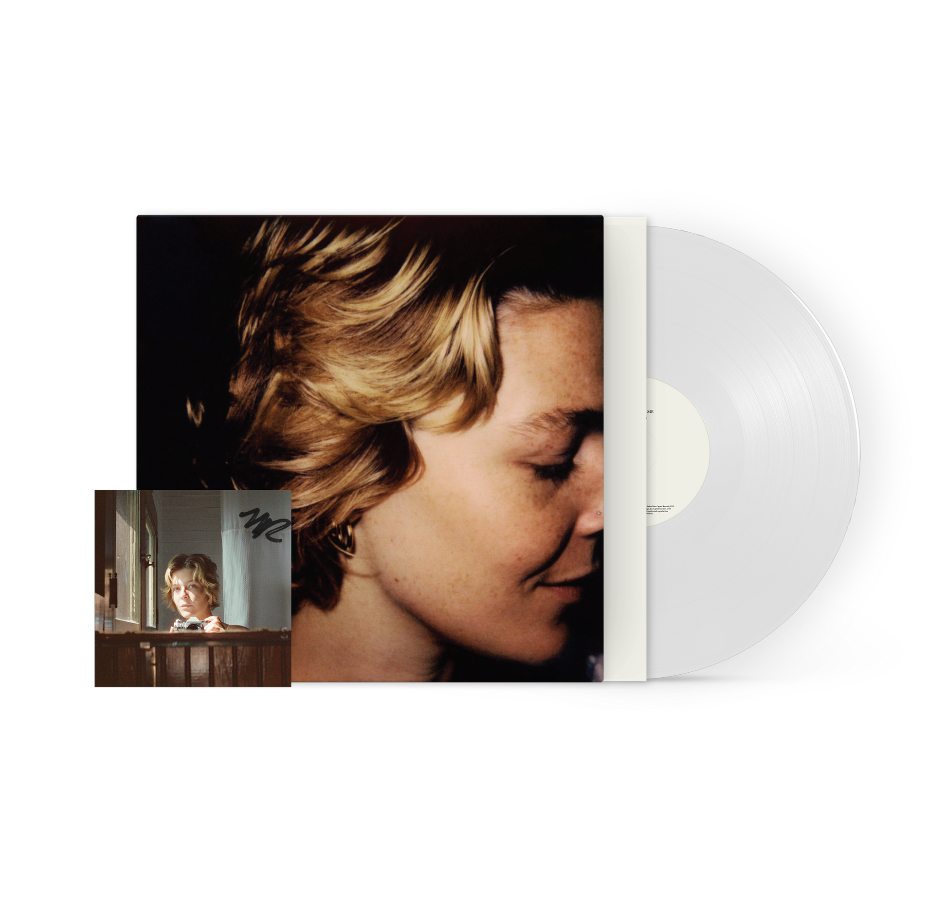 Vinilo de 12" color blanco milk con tarjeta firmada.