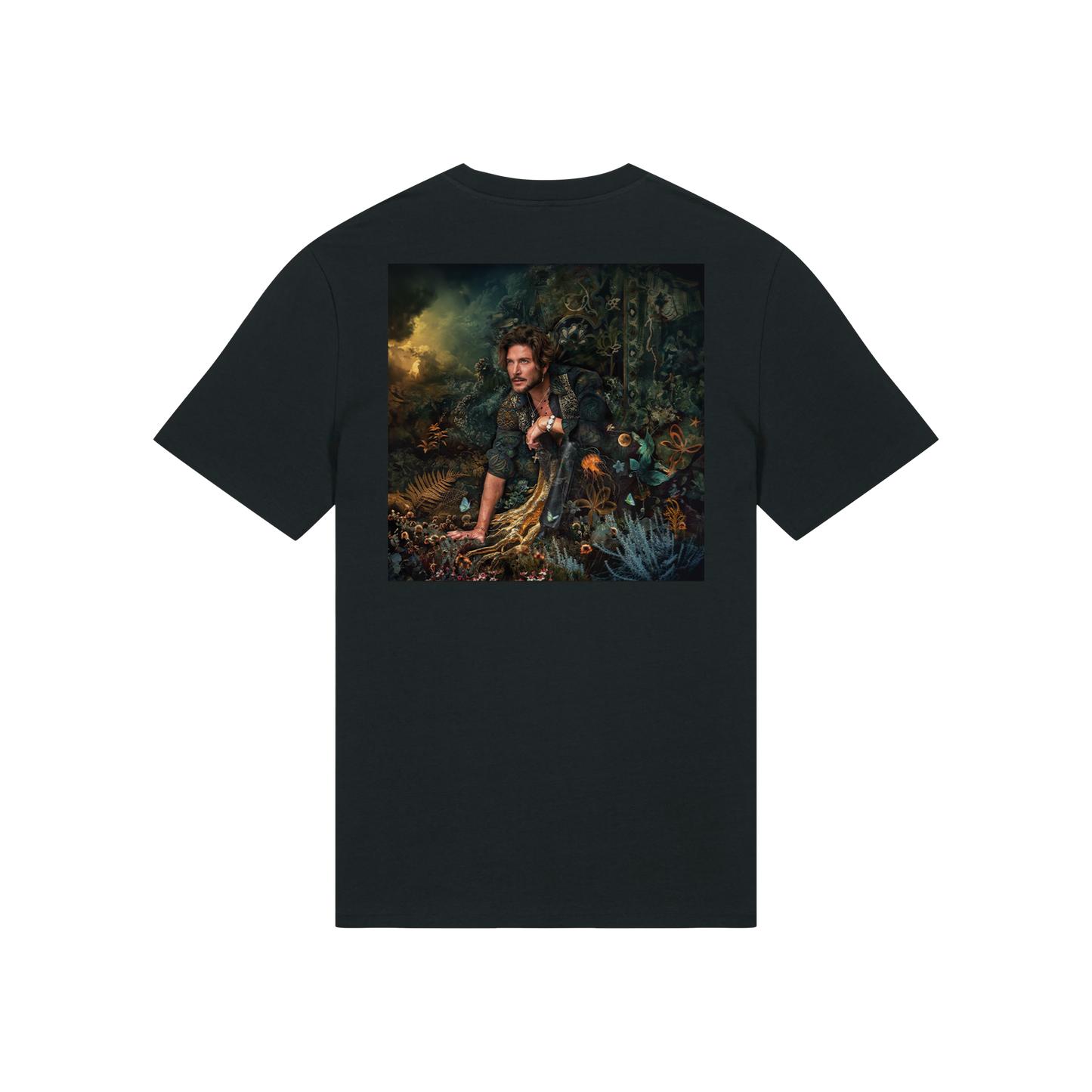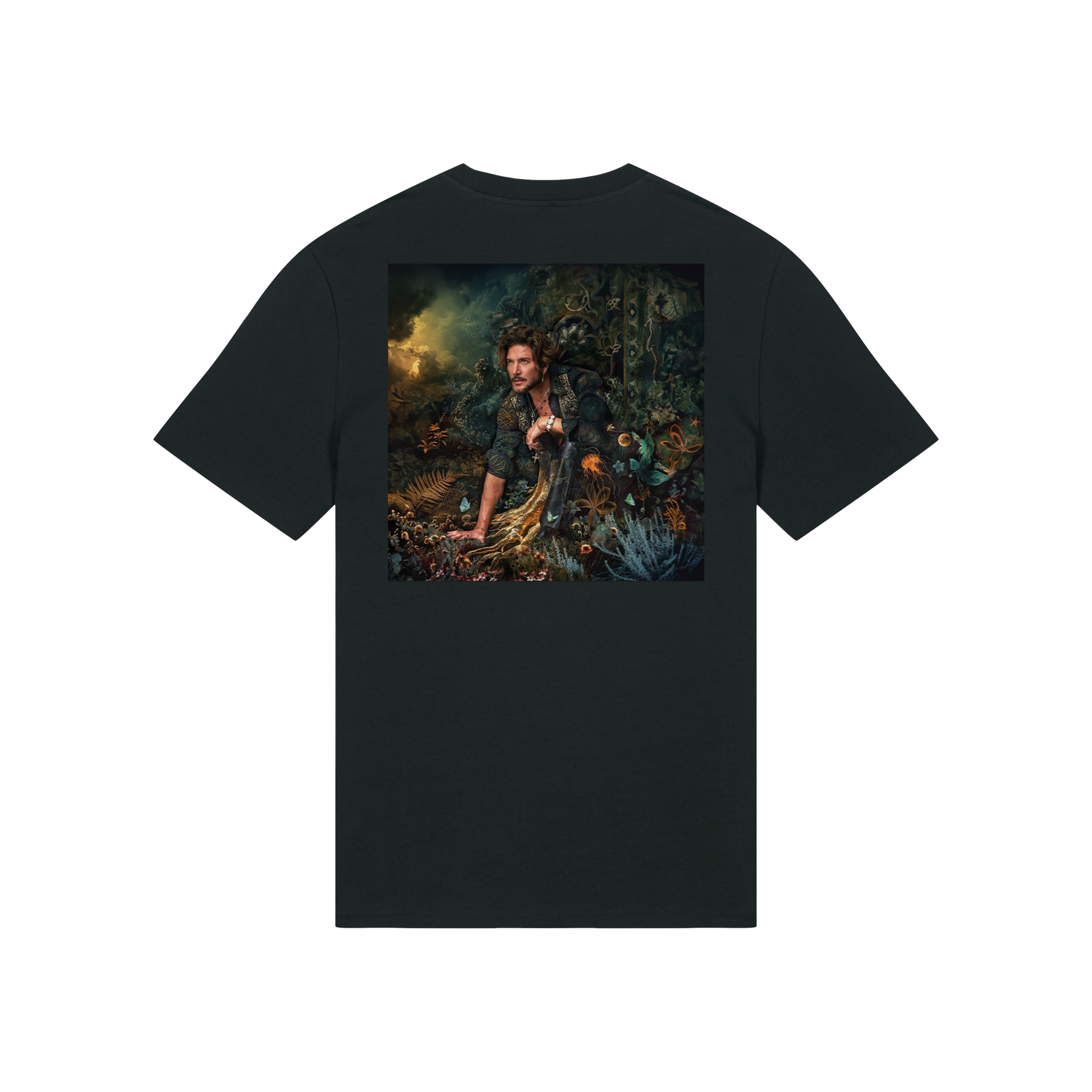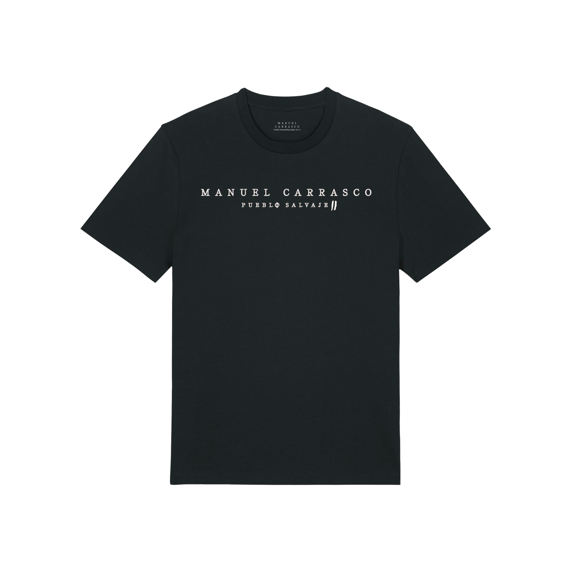 Camiseta con diseño exclusivo de Pueblo Salvaje II, el álbum de Manuel Carrasco que celebra nuestras raíces de una manera única. Edición negra.