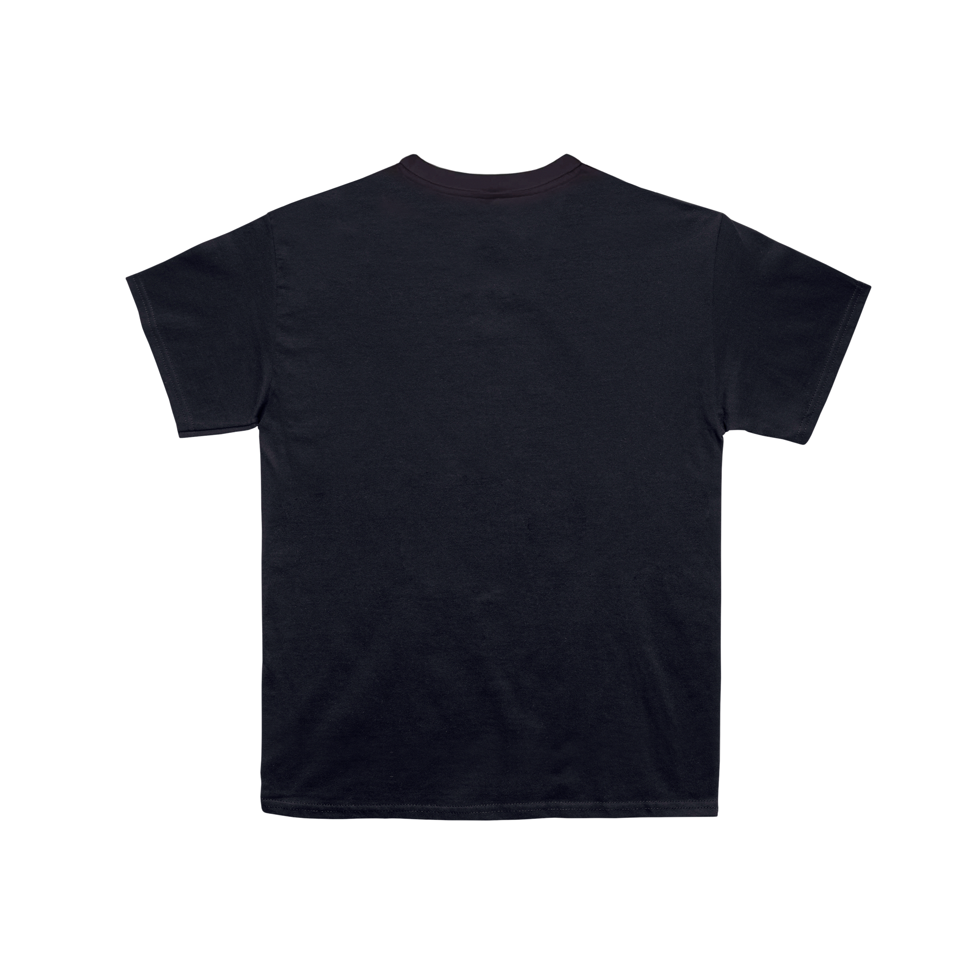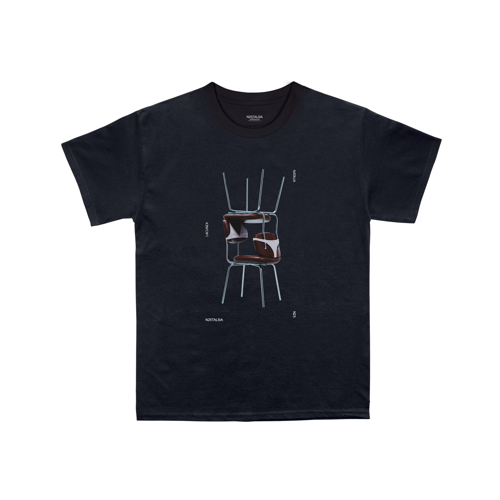 Camiseta negra con diseño frontal de dos sillas inspirada en la portada de la canción "Lo De Antes".