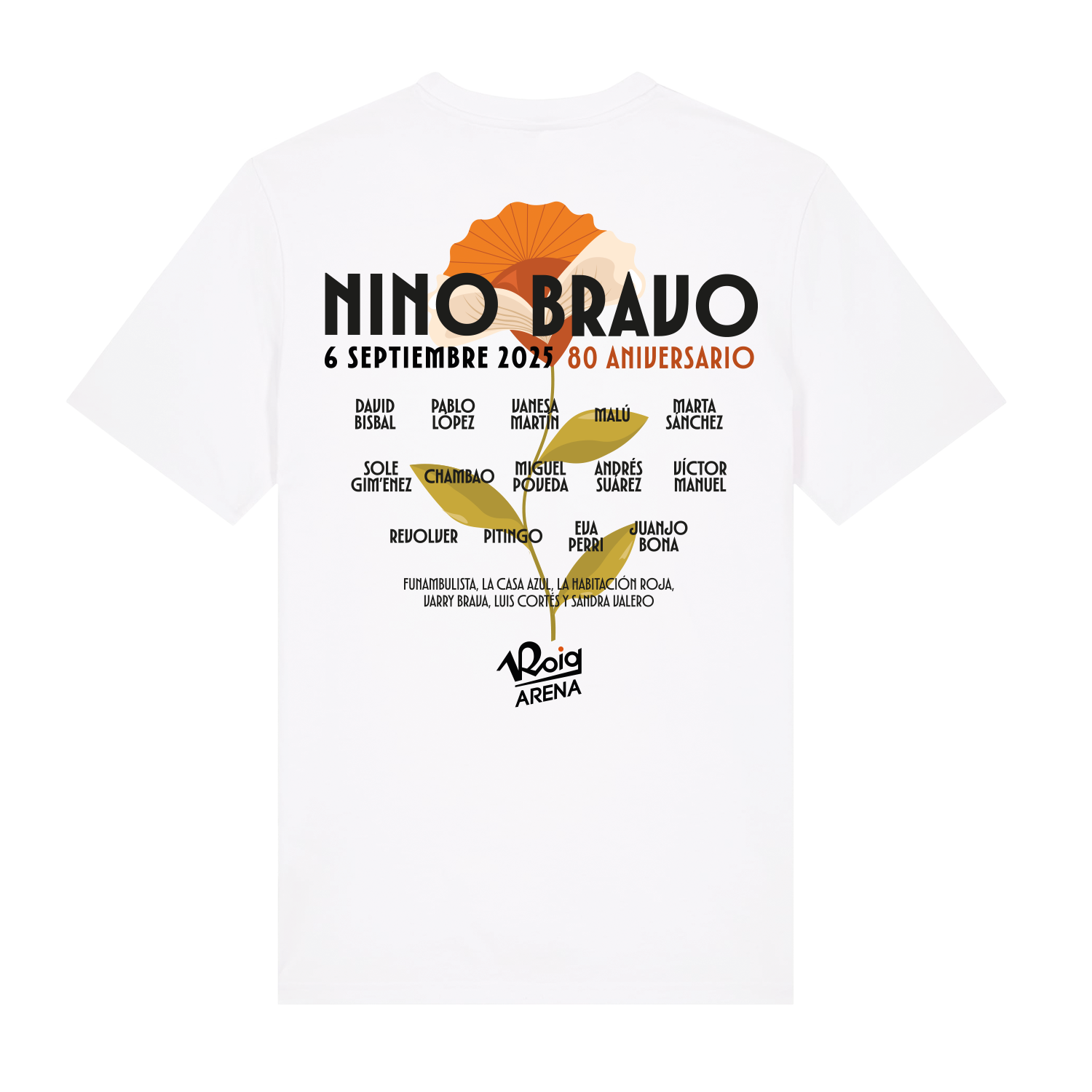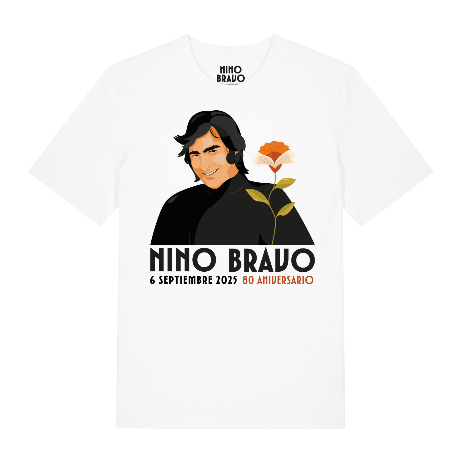 Diseño exclusivo con ilustración conmemorativa del 80 aniversario de Nino Bravo y detalles del line up del concierto en el dorsal. Una prenda imprescindible para los verdaderos fans de Nino.