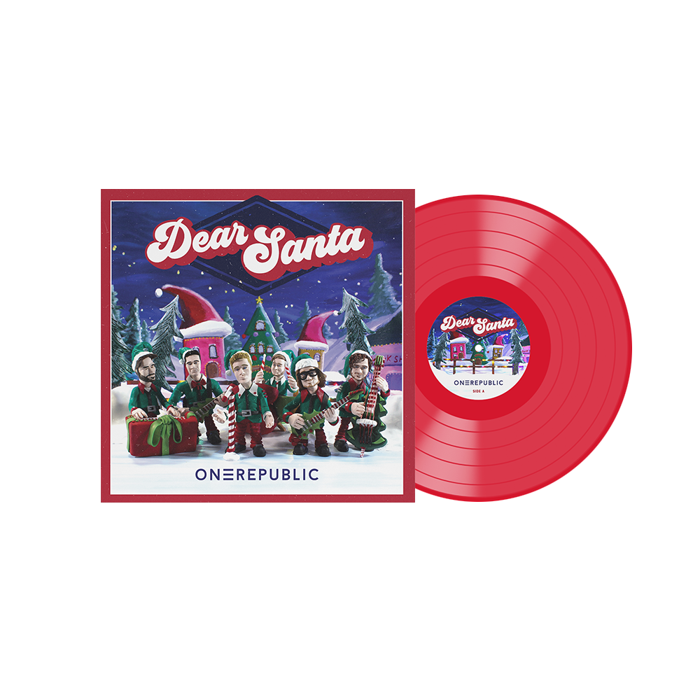 Edición limitada de 12" del nuevo single navideño de 2023 de OneRepublic, Dear Santa, prensado en vinilo rojo translúcido con funda perfumada de abeto.