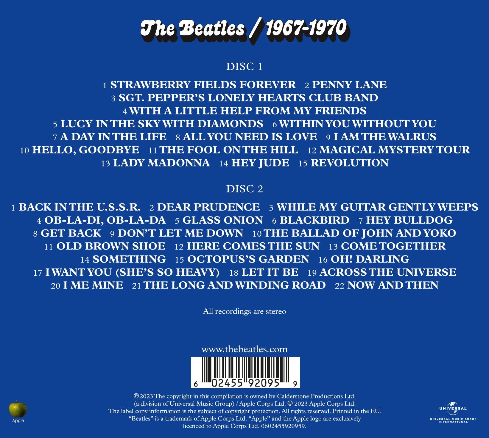 La colección de 2 CD contiene ahora 37 temas en total. Con un libreto que contiene nuevas notas del periodista y escritor John Harris, la nueva colección 1967 - 1970 es una celebración gozosa del legado musical atemporal de The Beatles.