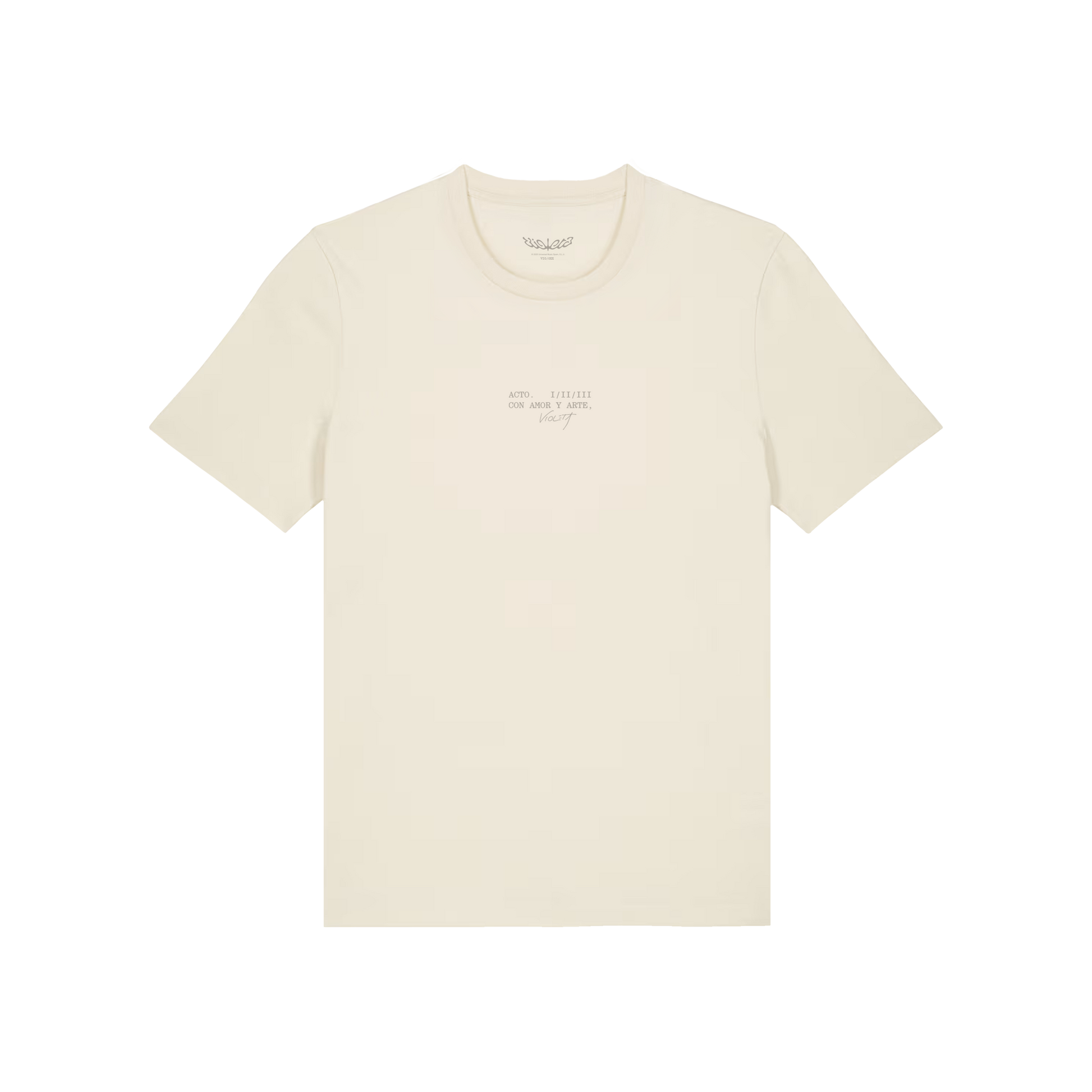 Dividido en tres actos, el álbum debut de Violeta se convierte en una experiencia teatral a la par que inspiradora. Esta camiseta quería transmitir justamente eso, con un diseño minimalista pero a la vez lleno de detalles.